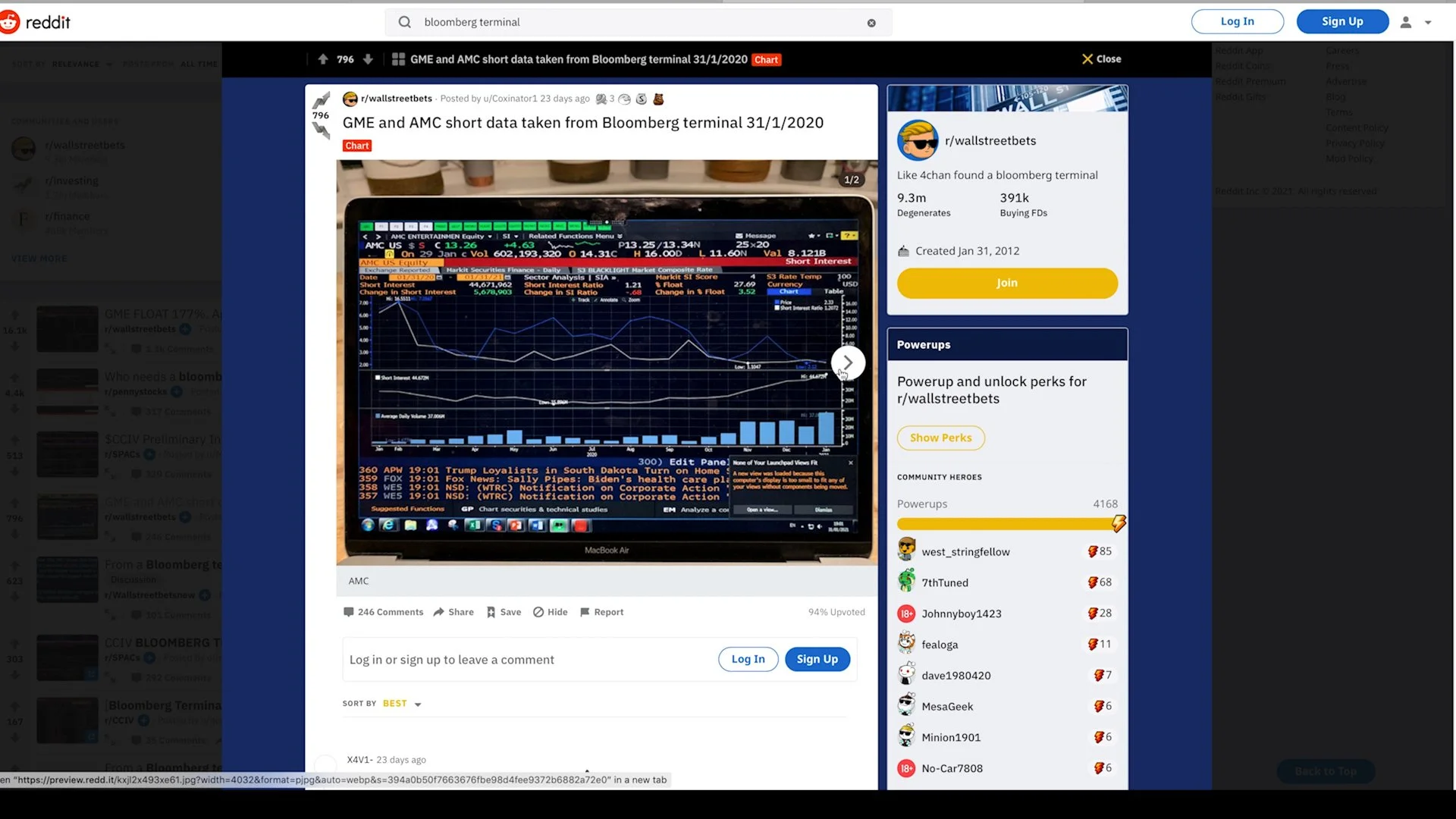 What would happen if r/Wallstreetbets found a Bloomberg terminal? Since 1982, the financial data vendor Bloomberg L.P. has provided real-time financial market data accessible only through an interface called the Bloomberg Terminal. For an annual fee of $20,000 you can buy and sell financial assets on Bloomberg’s secure proprietary network with 325,000 other subscribers throughout the world. Since 2012, the user account u/OPINION_IS_UNPOPULAR has moderated the subreddit page r/Wallstreetbets accessible on the public internet forum Reddit. This interface is available through nearly all web browsers on most any computer or smartphone. For a zero annual fee, you can exchange information, financial trading strategies, videos, and memes with 12.9 million other subscribers throughout the world.